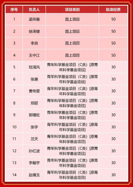近日,2025年度国家自然科学基金项目立项结果正式公布。在全院教工的共同努力下,我院共获资助项目14项(其中面上4项,青年10项),立项数量创历史新高,位列全校首位;资助率达17.95%,获批总经费500万元。其中,青年基金获批10项,充分体现了学院在青年科研人才培育和食品工业关键技术创新方面的突出优势。